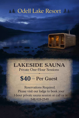 Slip into something unforgettable at Odell Lake Resort. Our brand-new lakeside sauna offers a private, one-hour escape right on the water for just $40 per person, where the warmth of cedar meets the absolutely breathtaking serenity of the lake. Looking for more exhilaration? Take the polar plunge for the ultimate contrast of heat and cold. Relax. Rush. Repeat.